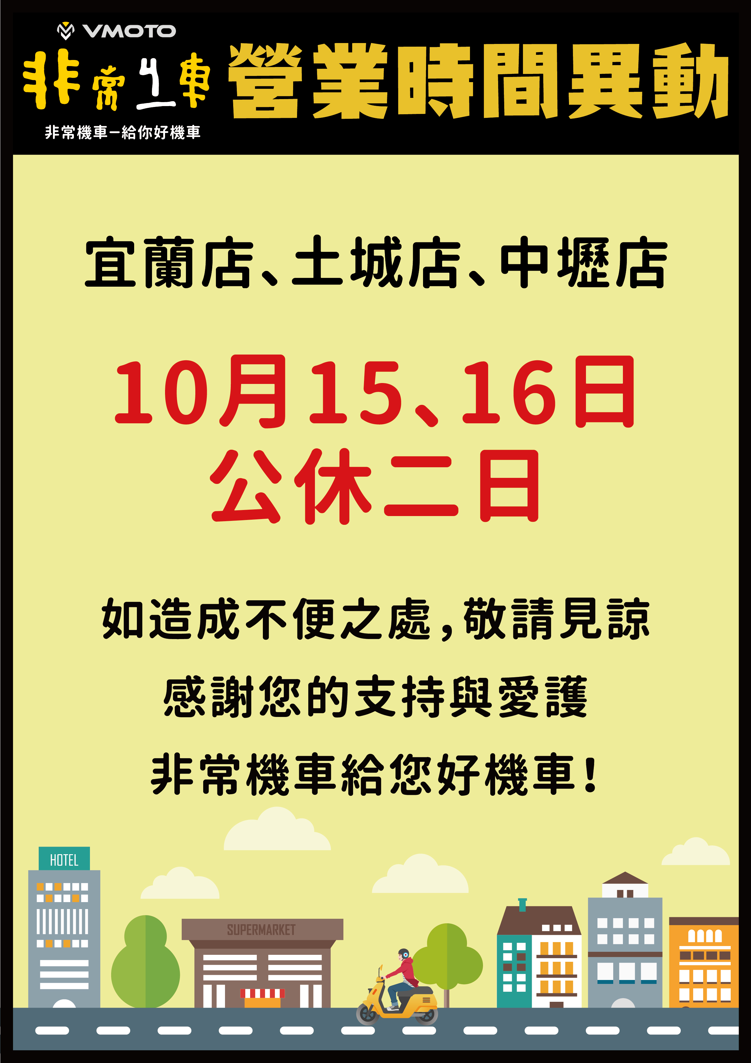 故【中壢店、土城店、宜蘭店】店休二天